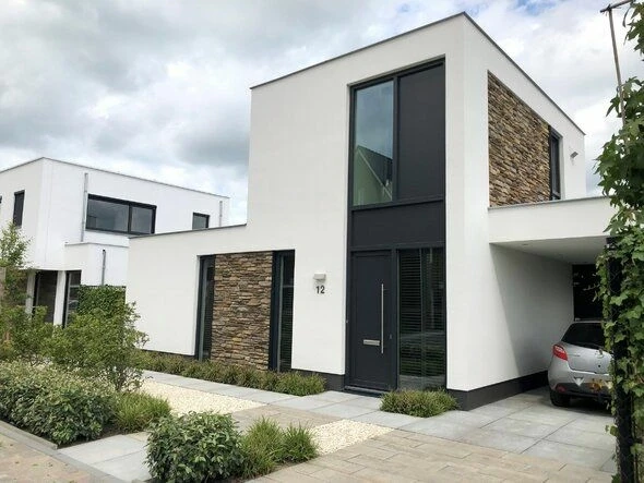 In Oosterhout realiseerden we een moderne villa met mediterrane uitstraling. De woning combineert strak stucwerk met natuursteen en beschikt over een ruime patiotuín.